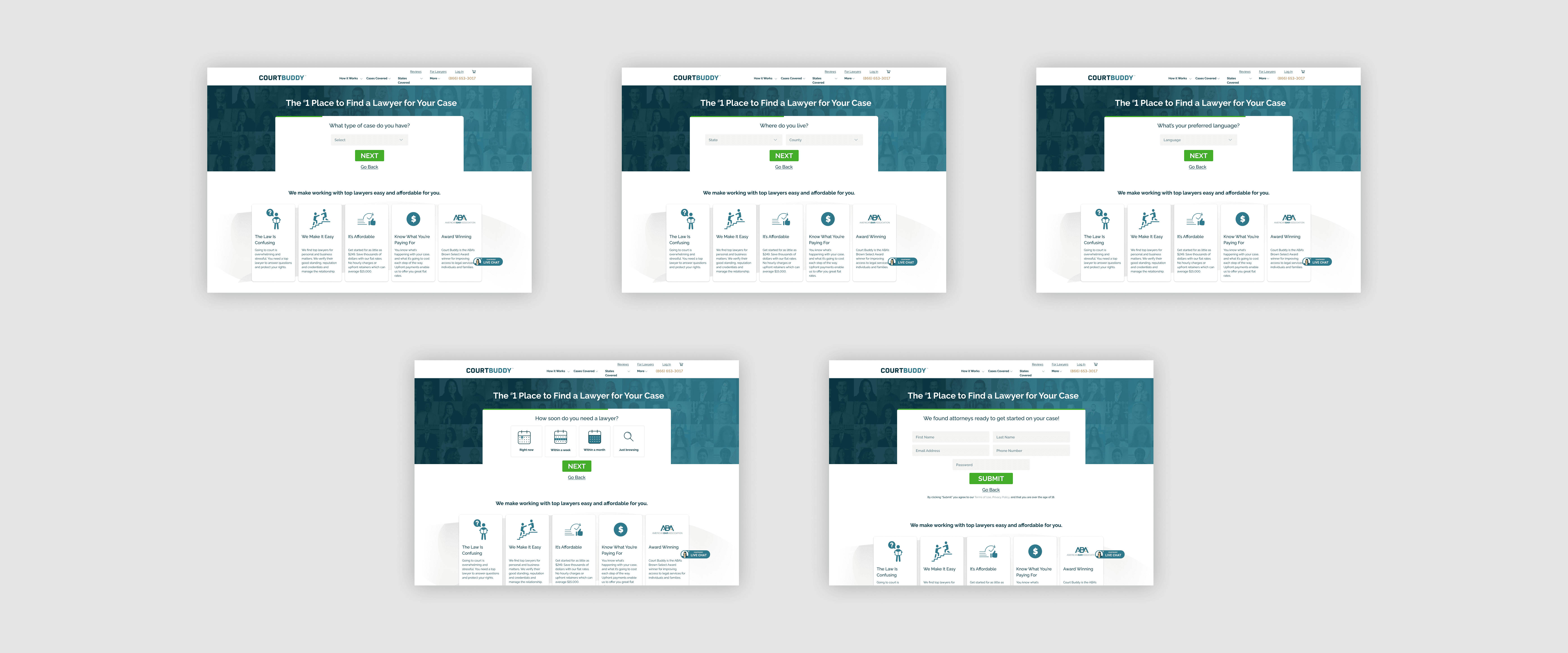 I learned how to grow conversion rates by introducing human connections visually as well as implementing stronger SEO strategies. There was a lot of experimenting at the beginning of the design process and I had to be patient as I got feedback at every juncture. Illustrations were nice but images of people and specifically our attorneys helped demonstrate that we were on a mission to help clients during this stressful period in their life.