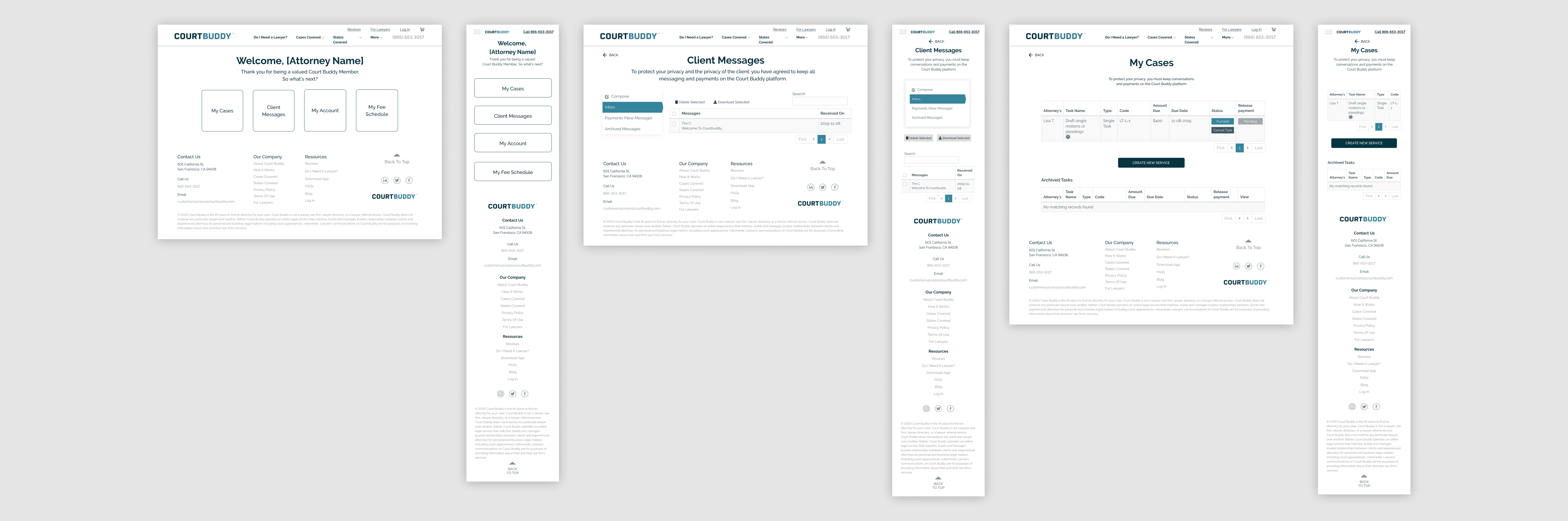 The dashboard created previously was bare bones and hard to navigate, especially on the mobile version. It was very confusing and had a bad user experience because the UI made some users have to go back and forth on some pages of the dashboard in order to complete actions. The first phase of cleaning up the dashboard was to contain the fires the previous dashboard created. Phase two was to build out a more effective dashboard that would help clients and attorneys complete the services on the platform.