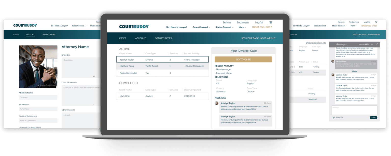 Court Buddy is a legal tech platform that matches paying clients to prescreened and certified attorneys on our platform. Attorneys are then able to perform services for flat fees. Some of the other resources provided by Court Buddy is a management and communication service for both types of users (Clients & Attorneys) to collaborate.